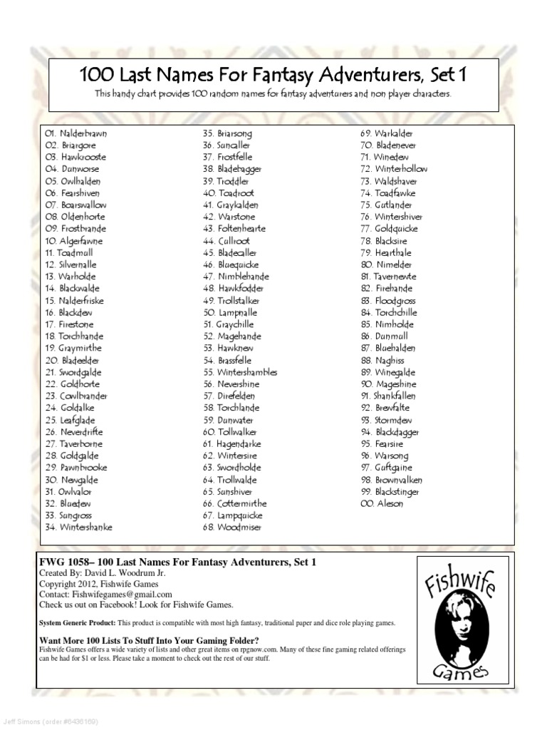 500 Fantasy Surnames Everydayknow Com