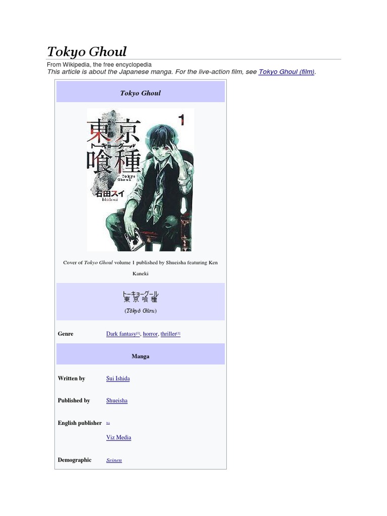 Tokyo Ghoul Wikipedia Manga Anime