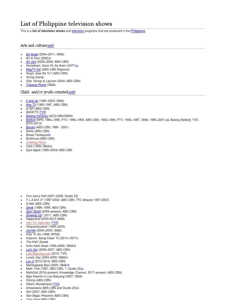 List Of Philippine Television Shows Articles On Wikipedia