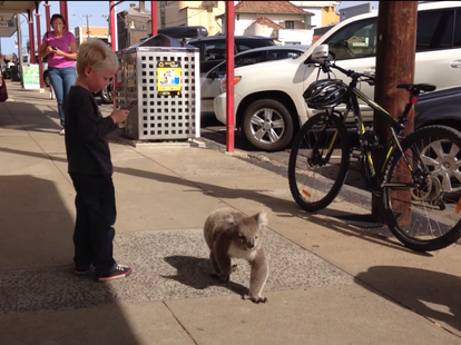 Cute Koala Bear Walks Down Busy Street In Portland Australia