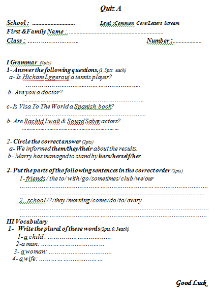 Quiz Sheet Zoobookoo