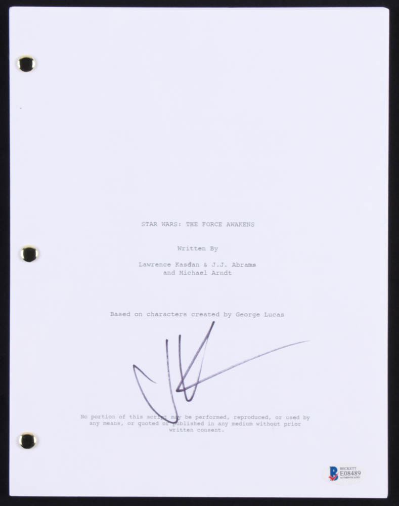 Jj Abrams Signed Star Wars The Force Awakens Full Movie Script
