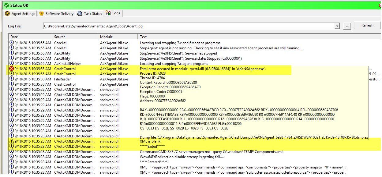 Server Inventory Symantec Management Agent May Crash While